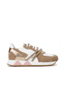 Leder-sneaker mit abgerundeter sohle die sich durch ein zusammenspiel von einsätzen aus mehreren materialien in pudrigen farbtönen auszeichnen. strassdetails umranden das oberteil.