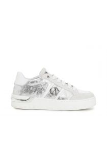 Sneaker aus metallisiertem Leder mit kleinen laminierten Einsätzen. Hochgezogene Sohle mit metallisiertem Einsatz.