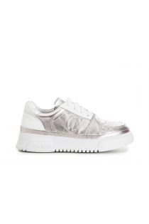 Sneaker aus metallic-leder mit erhabenem monogramm an der seite leichte schalensohle. abgerundete und dynamische modellierung.