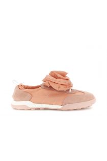 Damen-sneaker zum schnüren aus nylon und wildleder mit abnehmbarer maxiblume. lederinnensohle und 2.3 cm hohe sohle. bequem stylisch und perfekt für einen einzigartigen kreativen und urban-glamourösen look.