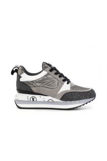 Sneaker aus Polyamid mit Rauleder und Glitzer- sowie laminierten Einsätzen. Erhöhte, speziell gestaltete Sohle.