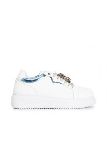 sneaker mit laminierten einsätzen und herausnehmbarem schmuckzubehör white/turquoise