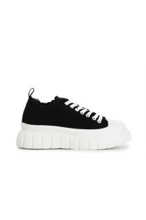 Schnürschuhe aus gefranstem stoff erhöhte sohle mit gestreiftem muster. das modell zeichnet sich durch eine zehenkappe aus gummi aus die den schuh verziert.