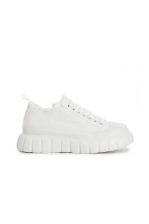 Schnürschuhe aus gefranstem stoff erhöhte sohle mit gestreiftem muster. das modell zeichnet sich durch eine zehenkappe aus gummi aus die den schuh verziert.