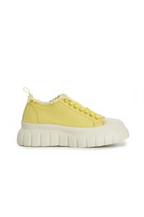 sneaker zum schnüren aus ausgefranstem stoff yellow