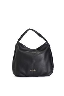 Weiche beuteltasche mit reißverschluss gerolltem griff und dekorativem anhänger in form einer tulpe.
