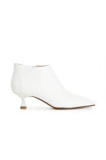 spitz zulaufende stiefelette mit seitlichem reißverschluss und mittlerem absatz off white
