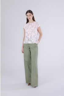Leichtes und elegantes spitzen-t-shirt mit überschnittenen ärmeln und geripptem lurex-ausschnitt. perfekt zu jeans oder hosen für einen femininen eleganten und vielseitigen look. das model ist 171 cm groß und trägt größe s. passform: normal.