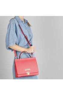 starre aktentasche aus lederimitat in saffianoleder-optik mit beutel coral