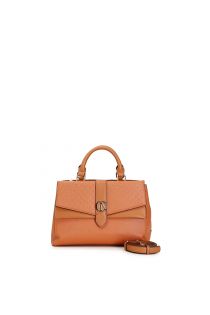 Starre bauletto-tasche aus saffiano-material mit scheinklappe an der vorderen seite verziert mit mikronieten und personalisiert mit cafènoir-charm; kann in der hand oder mit einem schulterriemen getragen werden.