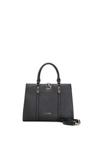 Starre Bauletto-Tasche mit Metallaccessoire am Ansatz der Griffe und Einsatz mit emailliertem CN-Monogramm vorn.