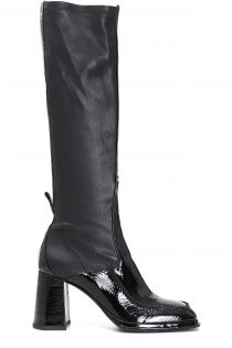 Stiefel aus Naplak-Leder und Stretchmaterial, quadratische Form, mittelhoher Absatz