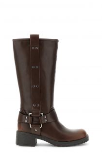 Stiefel mit sporen und schnallen. 47 mm hoher absatz. die innensohle ist aus leder. mit ihrem starken design sorgen sie für einen gewagten und praktischen look.