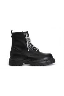 stiefelette aus kunstleder mit strass-schnürsenkeln black/crystal