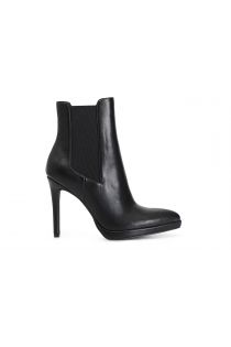 Spitz zulaufende damenstiefelette mit gummizug. die klare und essentielle linie unterstreicht die feminine silhouette und verleiht ein schickes und edles aussehen. die plateausohle beträgt 10 mm der absatz 100 mm.