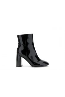 Damenstiefelette aus lackleder. reißverschluss innen. 88 mm quadratischer absatz. die innensohle ist aus leder. sehr vielseitiger und schicker schuh um büro- und freizeit-looks stilvoll zu interpretieren.