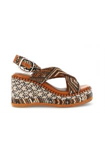 Stoff-sandalen mit gekreuzten riemen und 9.5 cm hohem keilabsatz. geflochtener riemen und bequeme innensohle. die idealen sommerschuhe im boho-chic-stil bieten maximale stabilität für einen frischen trendigen look.