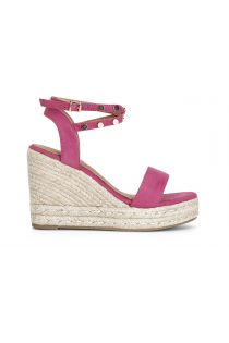 stoffsandalen mit nieten auf keilsohle aus hanf hot pink