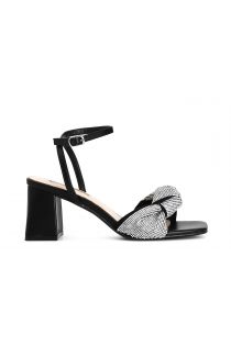 Sandalen mit maxistrassknoten. breiter hoher absatz.