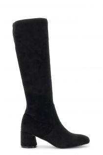Stretch-Stiefel im minimalistischen Design aus Wildlederimitat. Bequeme Passform und ein markanter 6-cm-Absatz sorgen für einen eleganten und praktischen Look – perfekt für jeden Tag.