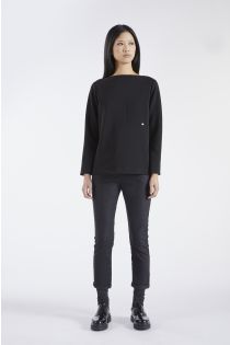 Sweatshirt aus dubliertem technischem Stoff und kontrastierender Innenseite. U-Boot-Ausschnitt.