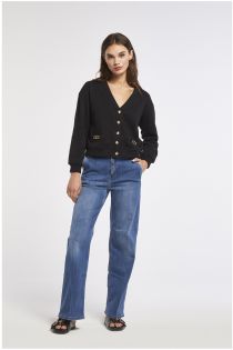Sweatshirt im cardigan-stil mit logo-knöpfen und plaketten mit logo auf den taschen