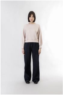 Sweatshirt mit u-boot-ausschnitt und weiten ärmeln aus viskose- und lurex-sweatshirt mit warmem griff. extrem vielseitig perfekt für die aktualisierung ihrer täglichen garderobe.