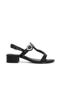 „t“-sandale aus leder mit schmuckbesatz absatzhöhe 35 mm