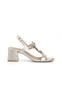 „t“-sandalen aus leder mit schmuckaccessoire. futter und innensohle sind aus leder. bequemer 5.5 cm hoher absatz.