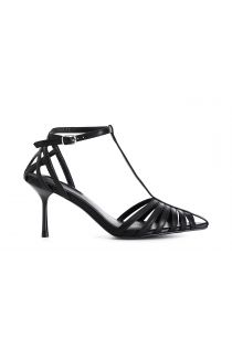 Gitter-sandalen t-form. knöchelriemchen mit schnalle. innensohle leder. 70 mm hoher absatz.