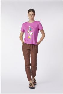 t-shirt aus baumwolljersey mit druck und blumenstickerei cyclamen