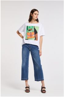 T-shirt aus baumwolljersey mit druck vorn der eine schmucktasche darstellt