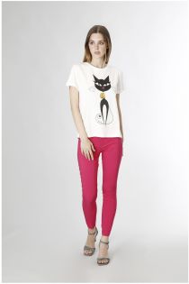 T-shirt aus baumwolljersey mit einer schwarzen katze