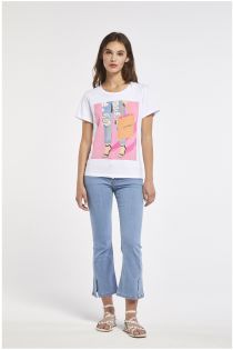 t-shirt aus baumwolljersey mit jeansdruck vorn white