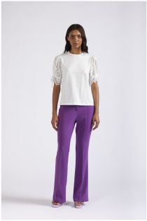 t-shirt aus baumwolljersey mit sangallo-stickerei an den ärmeln white