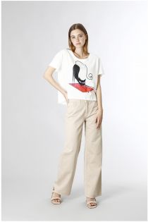 T-shirt aus baumwolljersey auf dem eine schwarze katze zu sehen ist
