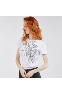 T-Shirt aus Baumwolljersey mit auffallendem aufgesticktem Blätter-Rankenmuster, das die den oberen Teil der Vorderseite ziert