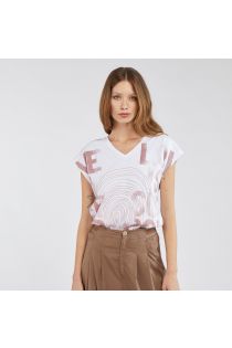 T-Shirt aus Stretch-Baumwolljersey mit einem Druck, der Maxi-Schriften reproduziert, die durch eine raffinierte Stickerei in demselben Farbton besonderen Reiz erhalten
