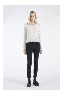 T-Shirt mit Boxy-Passform aus Seidengemisch. Die Nähte sind in Kontrastfarbe gearbeitet.
