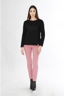 T-Shirt aus elastischem Baumwolljersey mit Stickerei aus Perlen, die den Schriftzug „Paris“ bilden