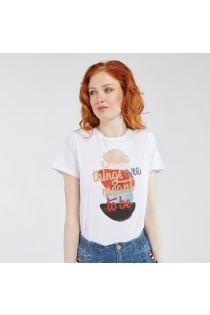 T-Shirt aus Baumwolljersey mit einem Mix aus aquarellartigen Drucken mit verschwommenem Effekt und einer Stickerei aus durchsichtigen Mikroperlen