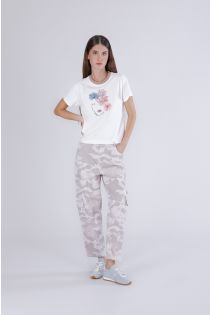T-shirt aus stretch-baumwolljersey mit normaler passform. der halsausschnitt ist mit einem gerippten geschwungenen lurexsaum versehen die ärmel sind kurz. der frontprint zeigt ein feminines gesicht in zarten pastellfarben und macht das shirt so sowohl feminin als auch vielseitig. das model ist 175 cm groß und trägt größe s. passform: normal.