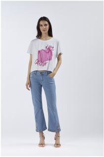 Kurzarm-t-shirt aus baumwoll-stretch-jersey mit cafènoir-taschenaufdruck.