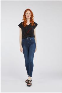 T-Shirt mit versetzter Schulternaht aus Stretch-Baumwolljersey mit aufgesticktem Logo