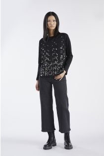 T-Shirt mit besonderer Stickerei, die die Aufschrift „stronger“ reproduziert