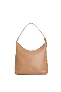 tasche aus echtem gehämmertem leder mit metalllogo tan
