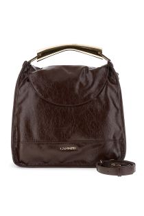Schultertasche in Naplak-Optik mit strukturiertem Metallgriff, Anhänger und Metallschriftzug. Ausgestattet mit einem verstellbaren und abnehmbaren Schulterriemen.