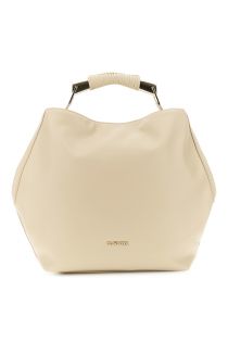 tasche in lederoptik mit metallgriff und zierfäden cream