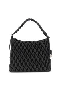 tasche in nappa-optik mit geflochtenem henkel und logo-charm black
