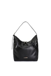 tasche mit falten, floralem laserschnitt, ziernieten und verstellbarem griff black